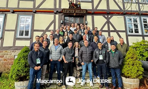 Além de visitarmos a feira, levamos nossos clientes para conhecerem a fábrica de tratores da John Deere em Mannheim, onde são fabricados os tratores 6M e 6R da companhia. Esta é a maior planta de produção de tratores na Alemanha, responsável por cerca de dois terços da produção nacional de tratores. Ao longo do tour, o grupo pôde acompanhar de perto todo o processo produtivo — da engenharia de precisão às linhas de montagem altamente automatizadas. Sua localização estratégica, próxima ao Rio Reno, facilita a exportação dos equipamentos para mais de 90 países. Ela é considerada o coração da produção de tratores John Deere na Europa.